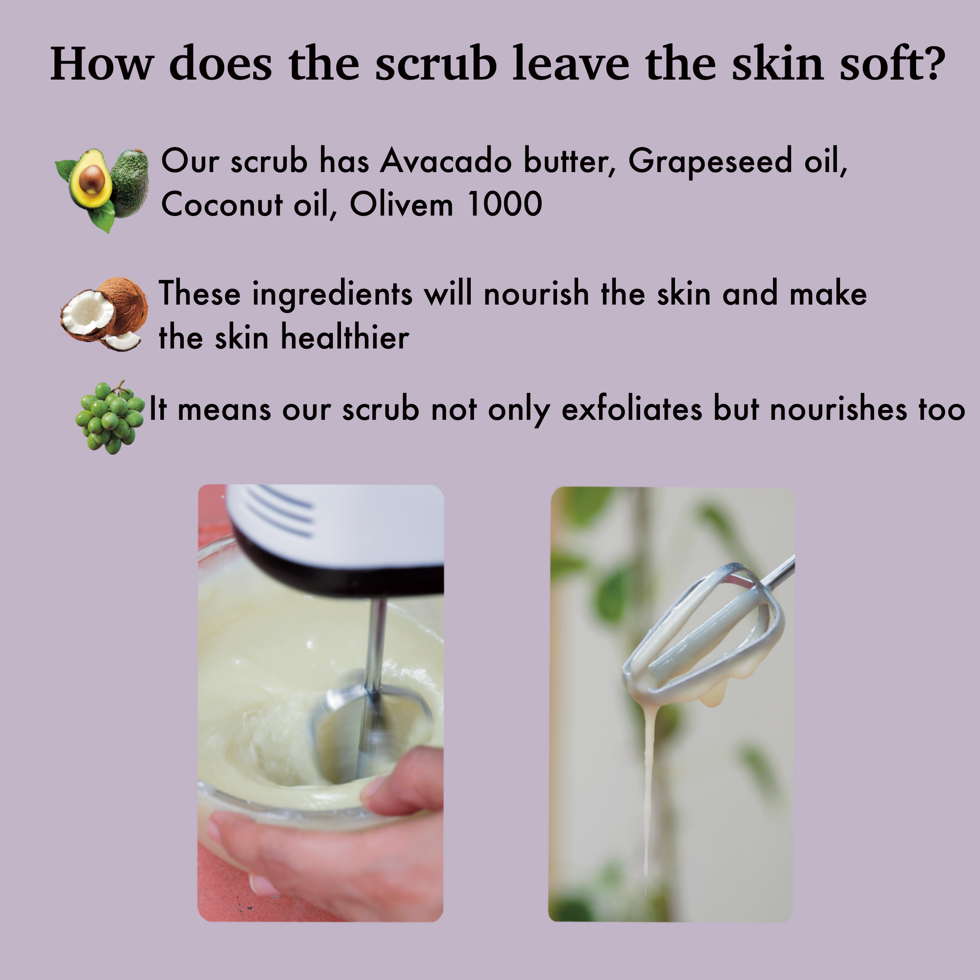 - Avocado Butter – Provides long-lasting hydration and suppleness