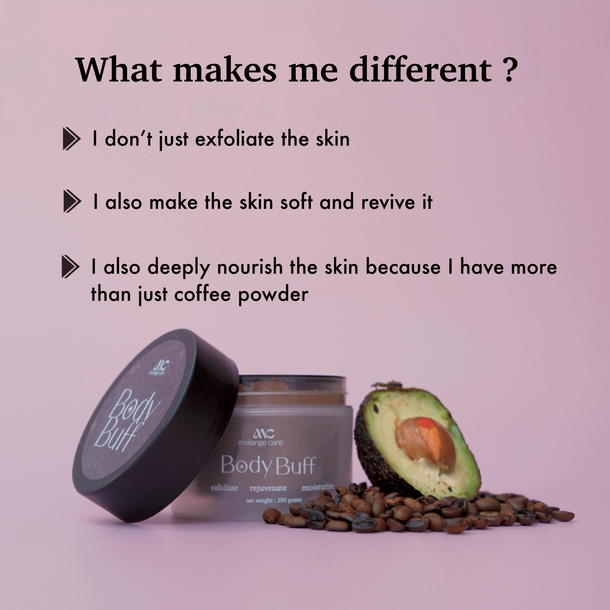 Experience a luxurious skincare ritual with Melange Care’s Body Buff — a whipped, creamy body scrub that gently exfoliates, deeply nourishes, and leaves your skin unbelievably soft.